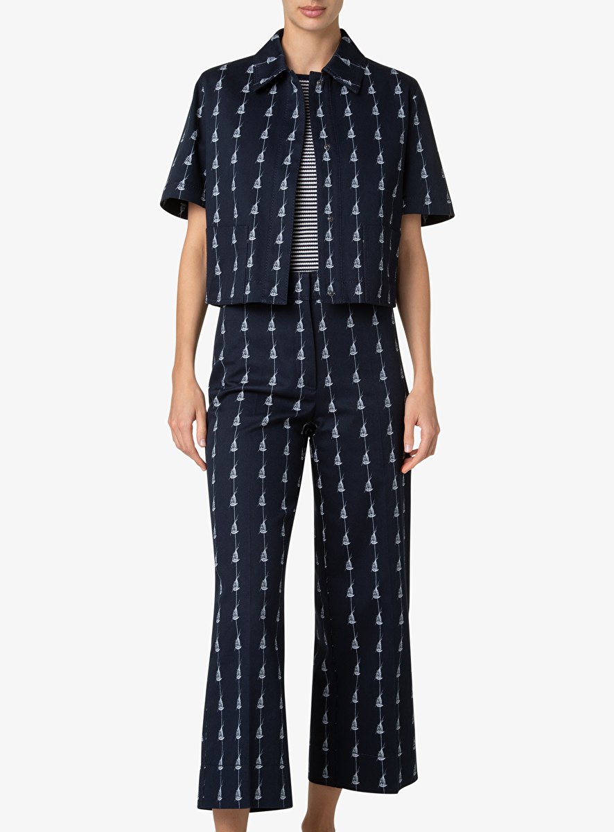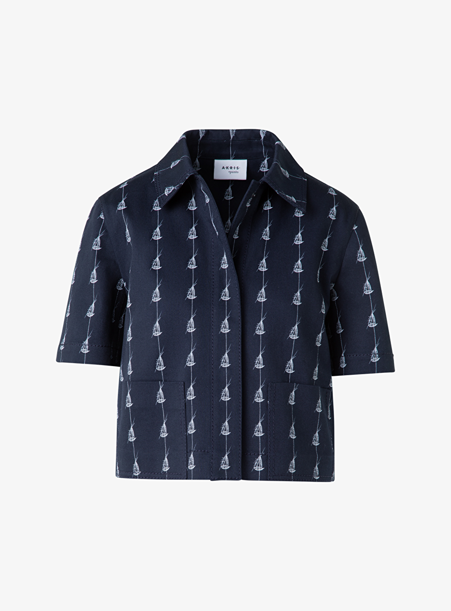 jasje korte mouw marine wit sailboat print