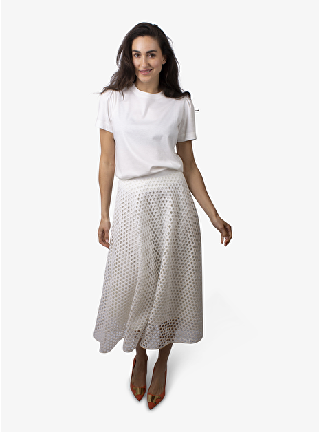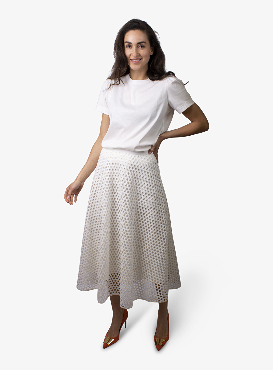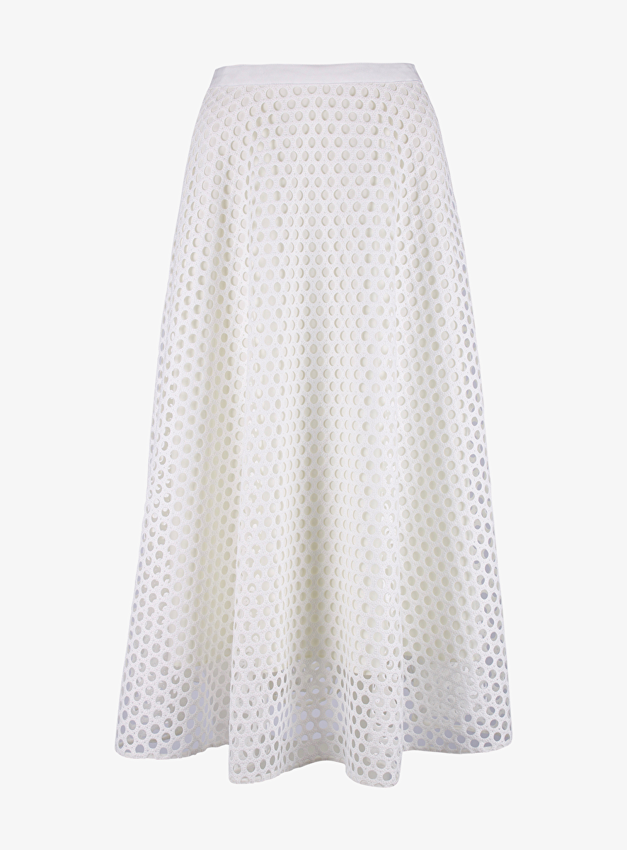 • Detail: open broderie struktuur - onder rok - afgewerkte taille met lint - rits, lus en knoopje aan de achterkant.