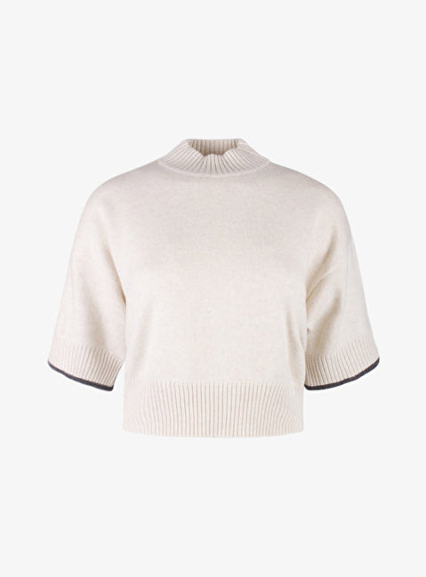 Detail: turtle - korte mouw met een smoked zilver glitterrandje - splitje aan de mouw.