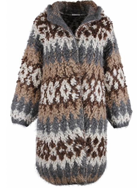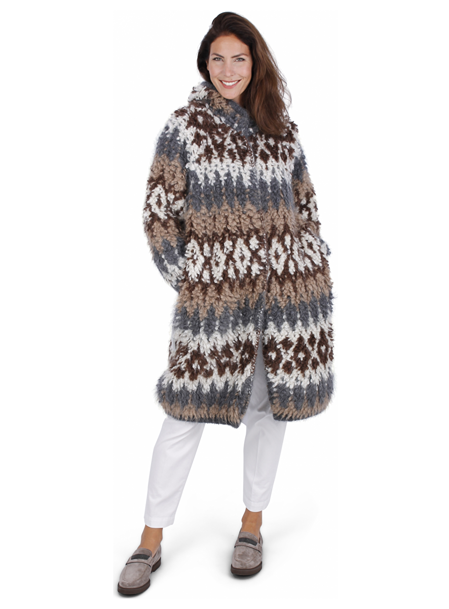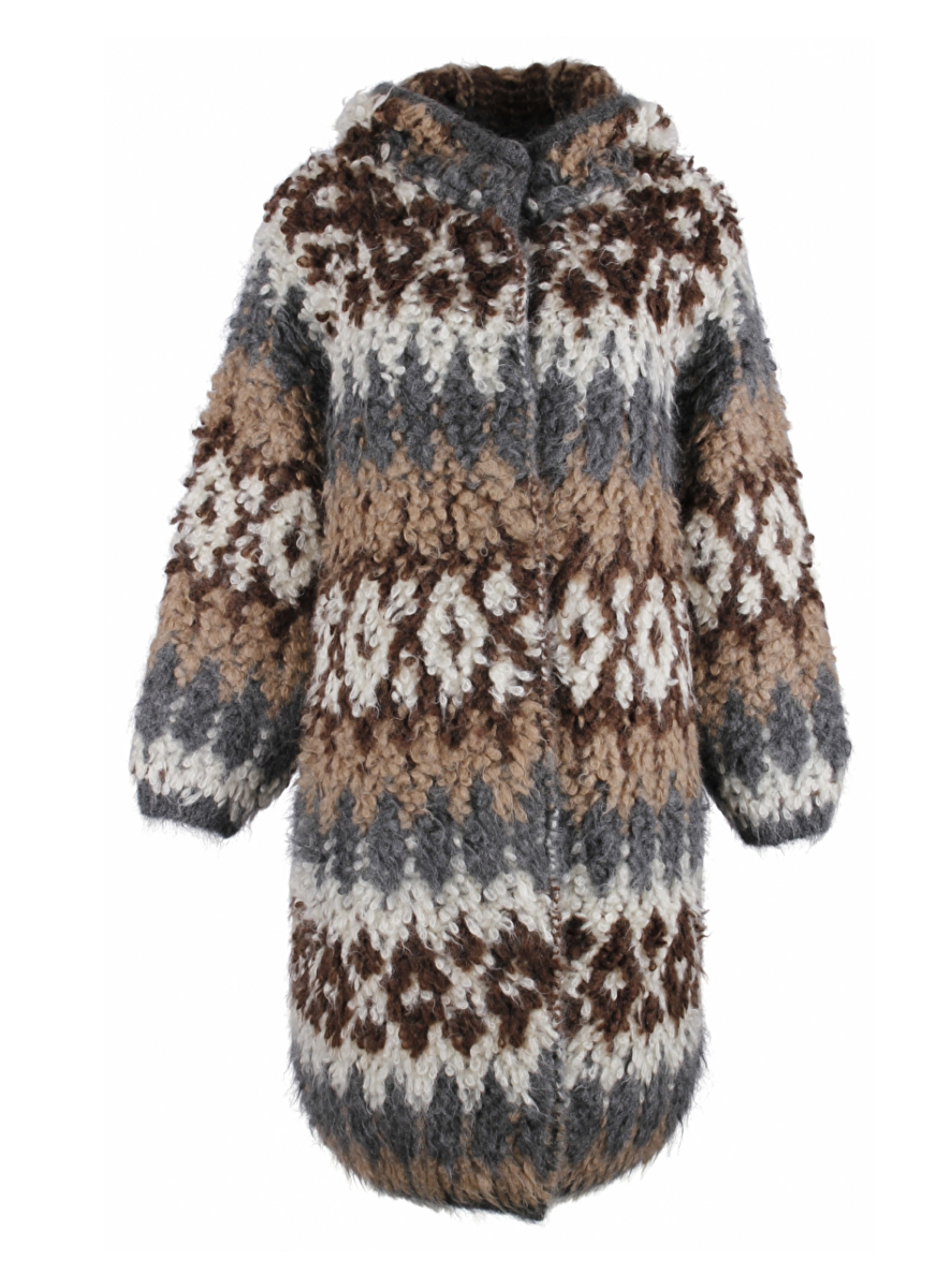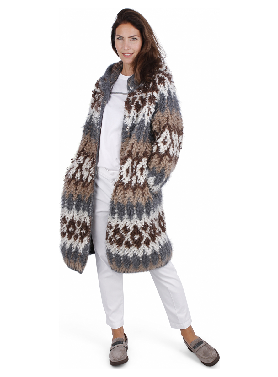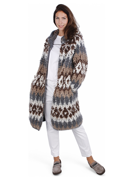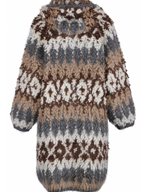 Vest met dessin. Capuchon - Blinde knopen - Zakken - Lang.