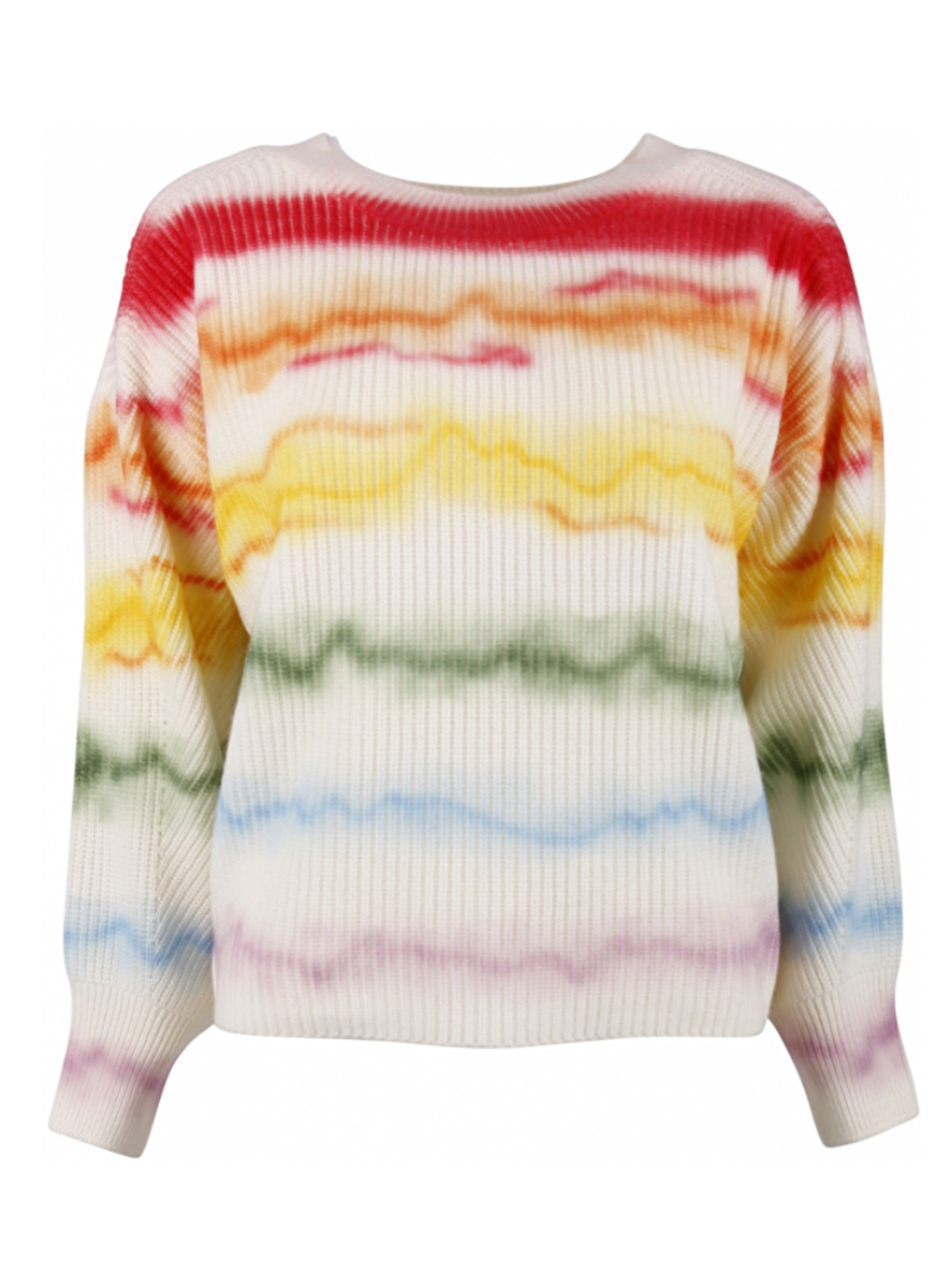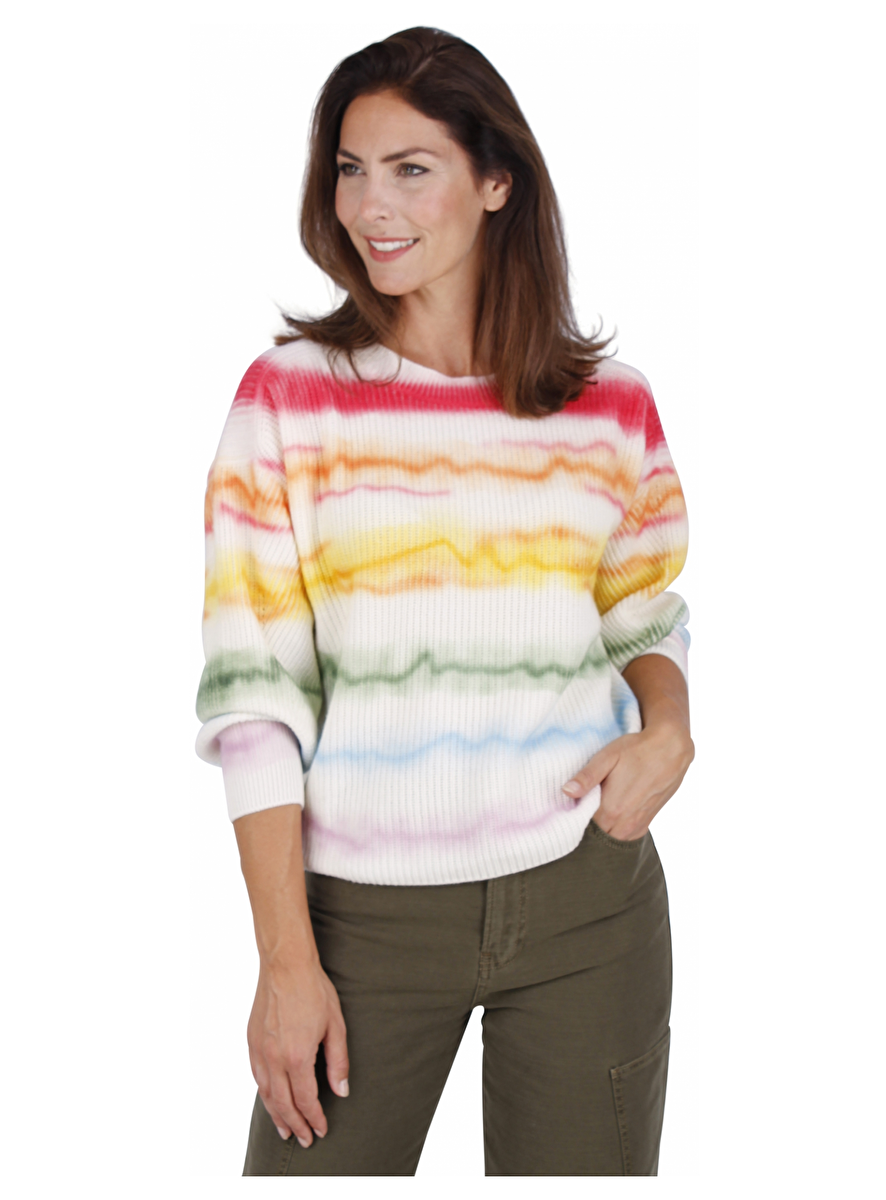 Pull offwhite streep multicolor dessin met ronde hals en mouwen uit 1 stuk.