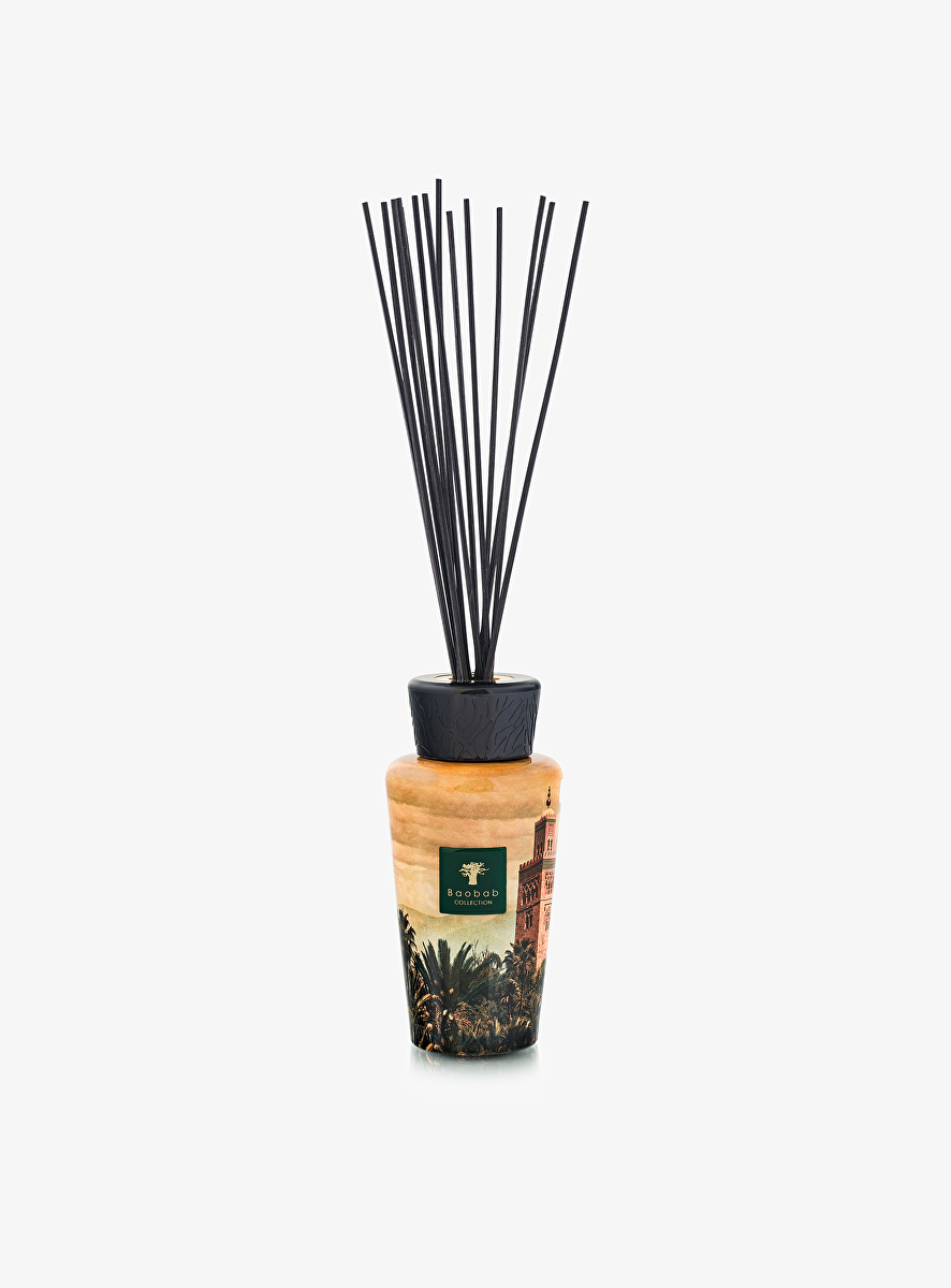 Deze parfumdiffuser die de grootsheid van de Koutoubia oproept, het Almohadische architecturale icoon uit de 12de eeuw, omvat de essentie van Marrakesh. Verworteld in een geanimeerde medina, omringd door muren en palmbomen, staat de trotse Koutoubia die een uniek aura uitstraalt. Het verfijnde design van de diffuser is versierd met motieven geïnspireerd op dit iconische monument en verspreidt een betoverend parfum dat de ruimte vult met een subtiele, warme oriëntaalse geur.