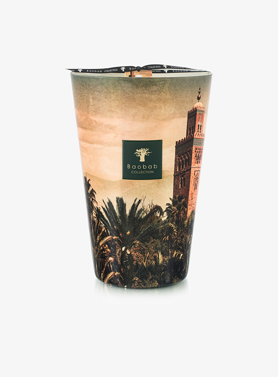 Afgespiegeld tegen de lucht boven Marrakesh, is de Koutoubia een Almohadische architecturale parel uit de 12de eeuw. De Koutoubia is een plek voor gebed met aan haar voeten een levendige, omwalde medina omringd door palmbomen. Tegen de horizon achter dit monument, het symbool van Marrakesh, tekenen de besneeuwde toppen van de Atlas zich af. Doorheen het gesublimeerde glas van de Koutoubia-kaars laat het schijnsel van de vlam het decor oplichten als een oriëntaals schilderij.