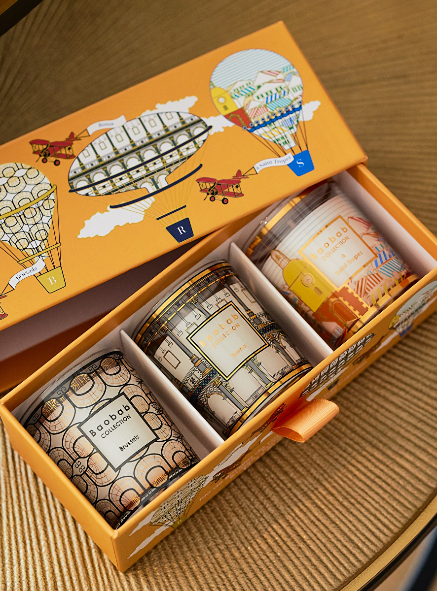 Travelset max06 oranje 3 mini kaarsen brussels roma saint tropez