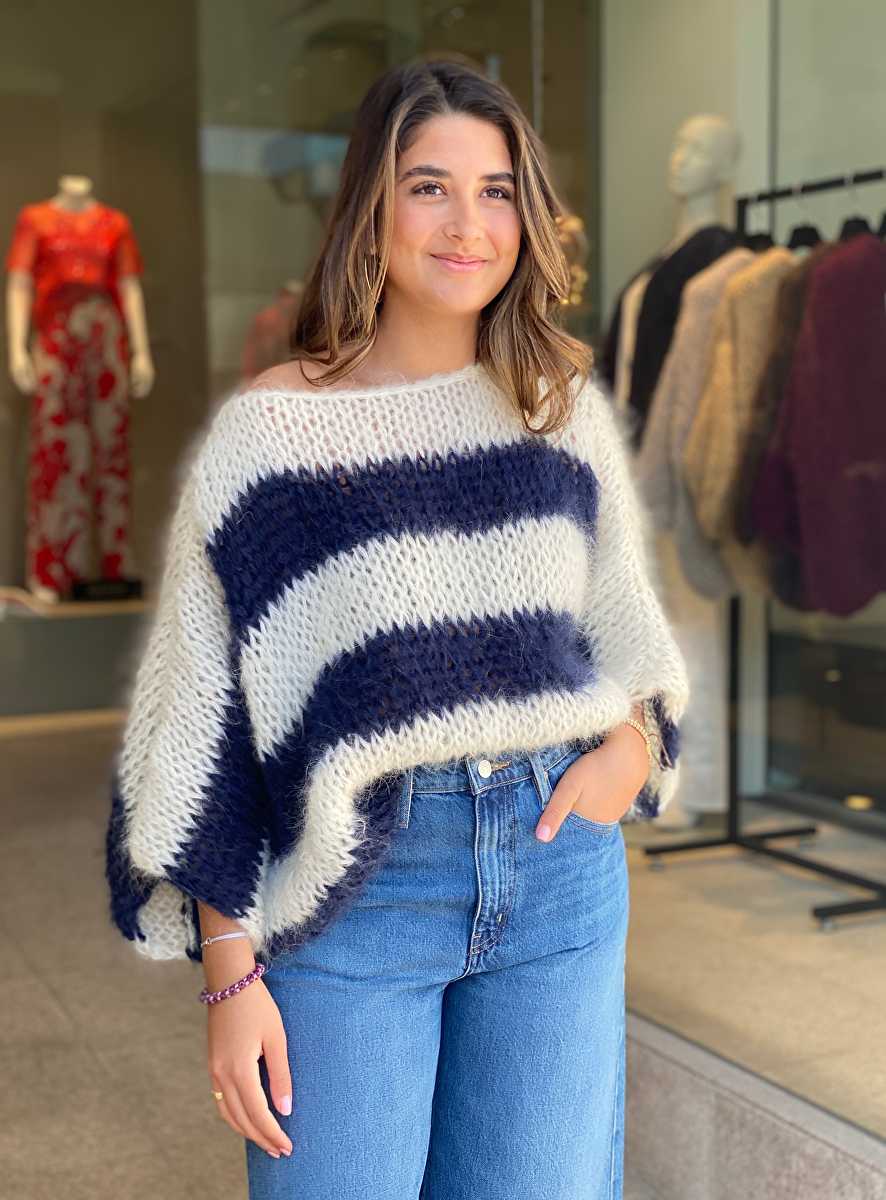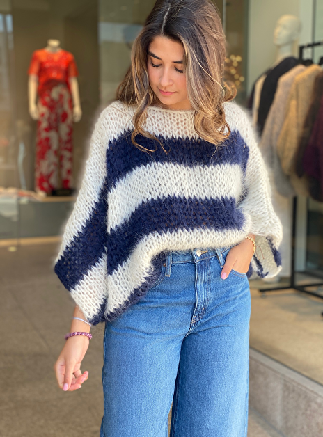 Pull mohair streep navy offwhite