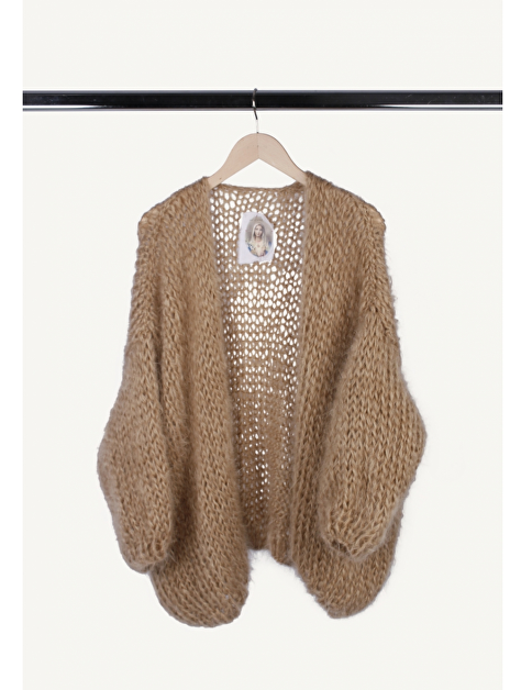 Een Bernadette vest oftewel een draagbaar wolkje van puur mohair is een echte 'musthave'. Dit camel kleurige exemplaar is zeer draagbaar en comfortabel. Handgemaakt breiwerk wat eigenlijk niet in uw kast mag ontbreken. het vest is 1 maat en valt royaal.