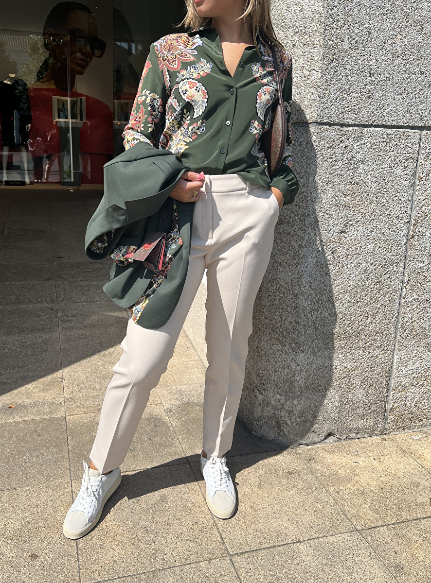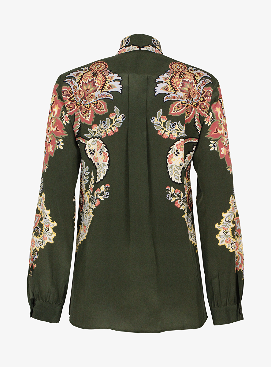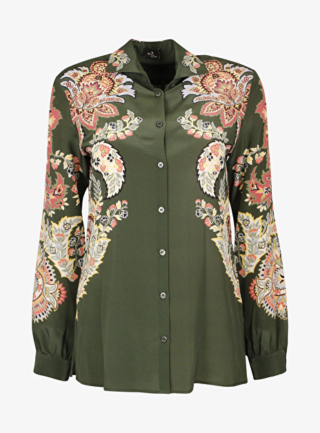• Detail: kraag - knoopsluiting - manchetten met knoopje - splitten 7 cm - paisley print.