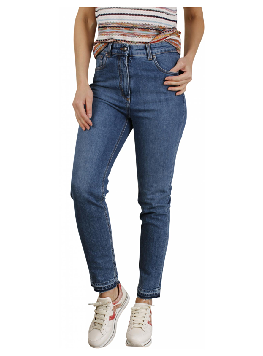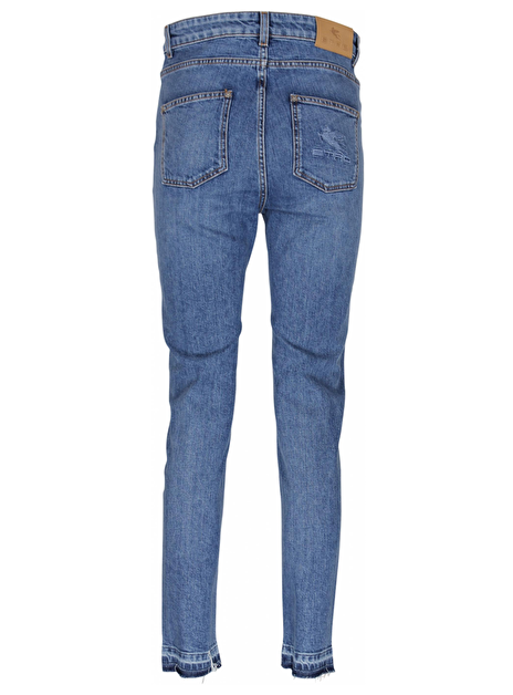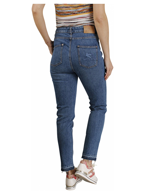 Deze jeans heeft five pockets en een high rise waist. Aan de achterkant heeft de broek een geborduurde Peagasus Etro branding. De onderkant zoom heeft een bewerkte urban rand.