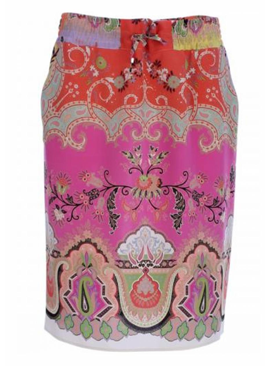 Etro staat bekend om de rijke dessins, stoffen en kleurgebruik. Dit rokje is dan ook typisch Etro en de liefhebber herkent dit van afstand. Het materiaal bestaat geheel uit zijde. De rok heeft twee steekzakjes voor een nonchalante uitstraling en kan door middel van een touwtje aangesnoerd worden, aan deze touwtjes een origineel zilverkleurig Etro detail. Met deze rok kunt u eindeloos varieren en combineren omdat er altijd wel iets bij past.