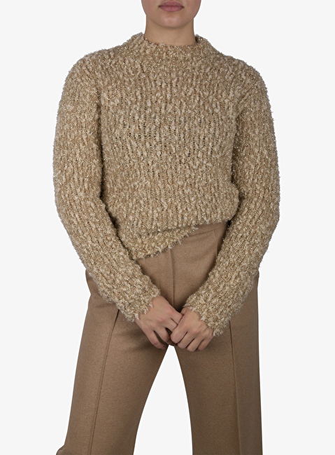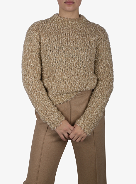 • Detail: boucle lussen breisel met metalic goud mellee - hoge ronde hals - raglan mouwinzet - lange mouwen