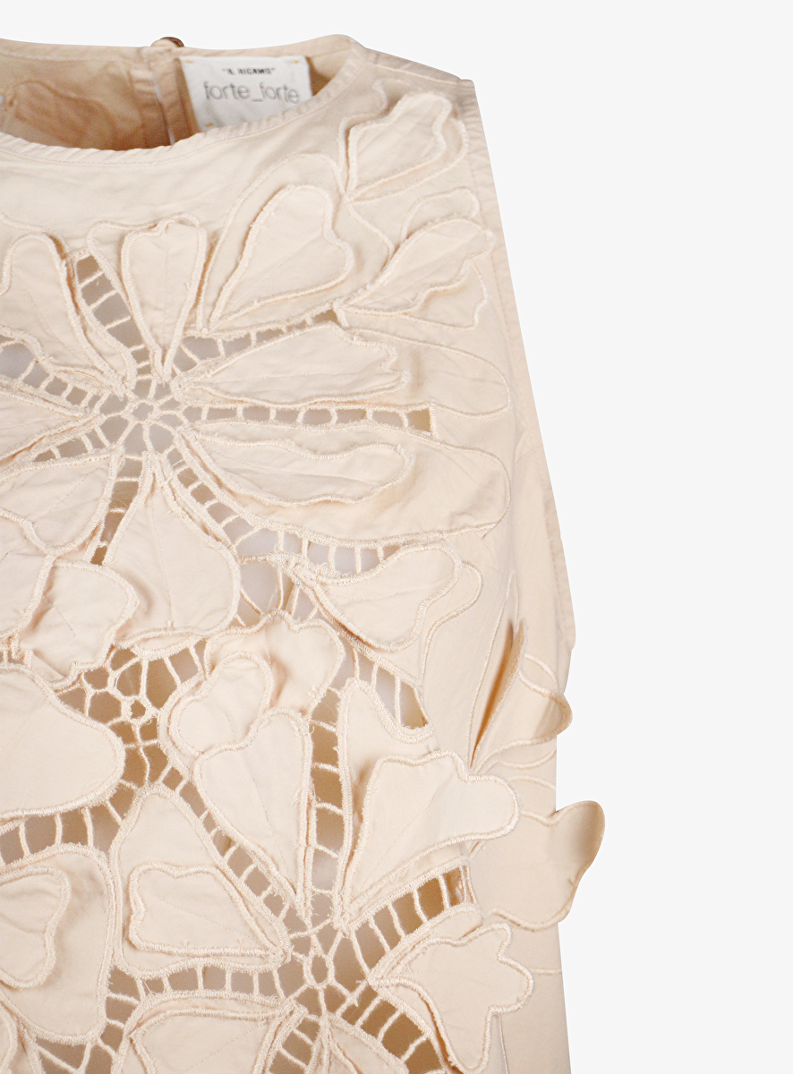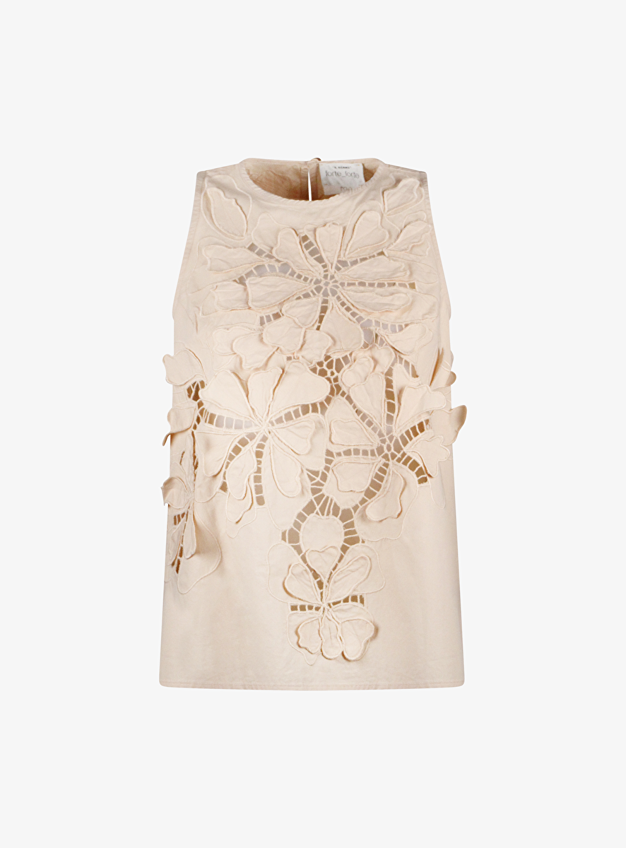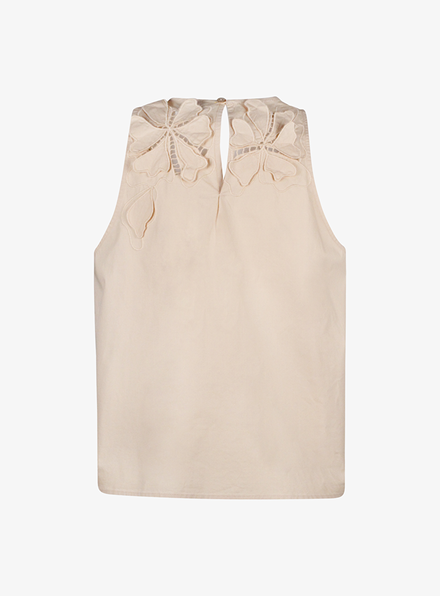 Top broderie nude mouwloos