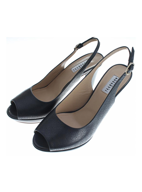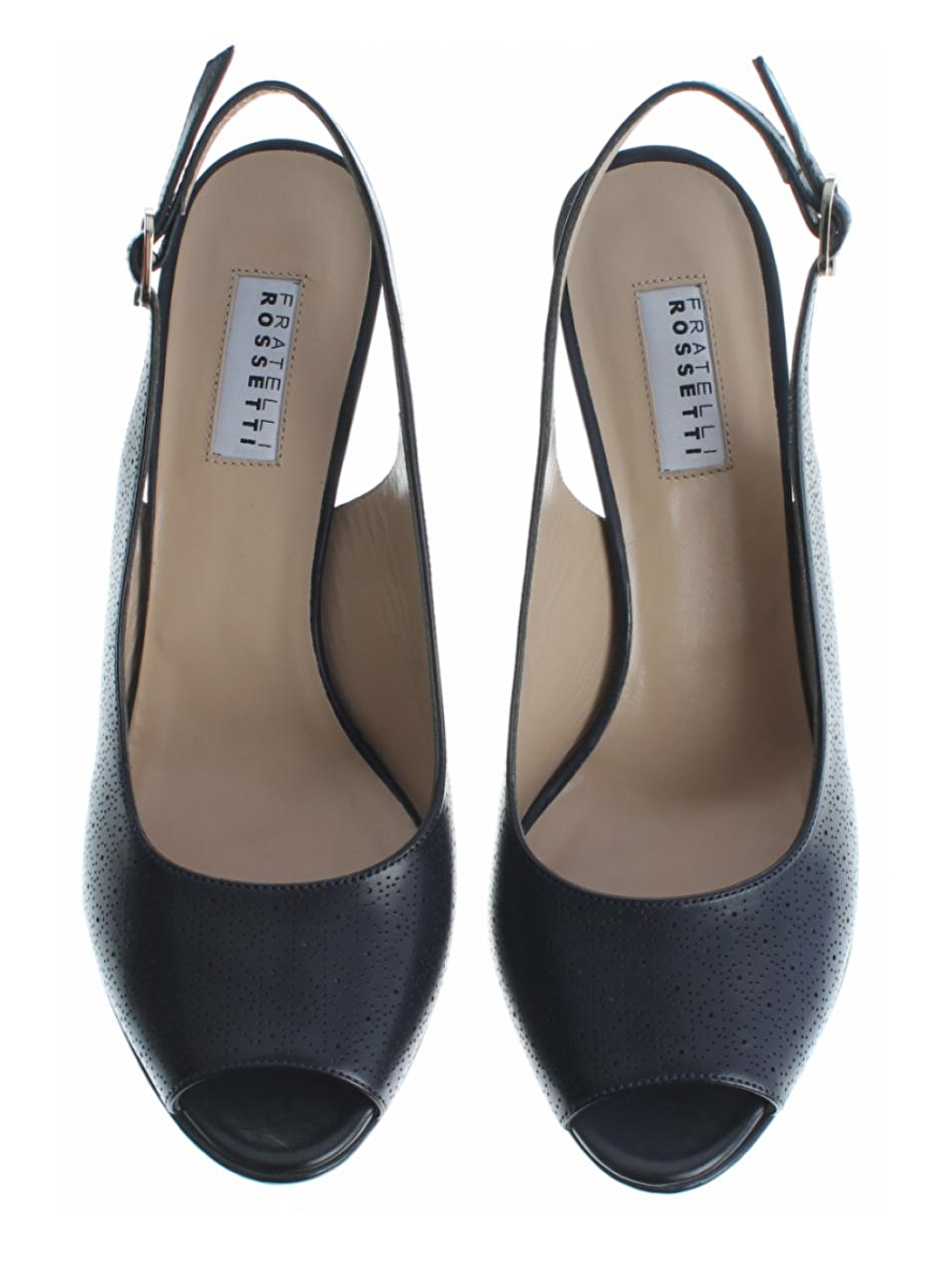 Sandalette slingback peep toe uitgevoerd in het marine blauw met opengewerkt dessin waardoor een glittertje schemert.. Deze sandalette is tijdloos maar wel in een modern en nieuw jasje gestoken. De schoenen van Fratelli Rossetti staan bekend om hun Italiaanse vakmanschap en elegantie wat ook in deze pump weer sterk naar voren komt. De hak is 9 centimeter hoog maar door het plateau van 2 centimeter blijft deze pump zeer comfortabel en draagbaar. Het materiaal bestaat geheel uit leder.