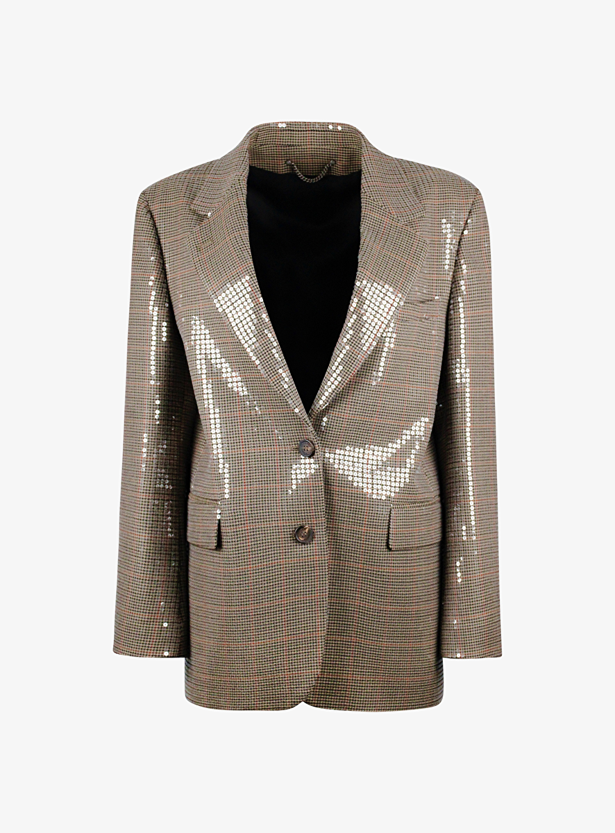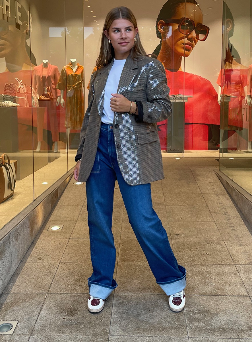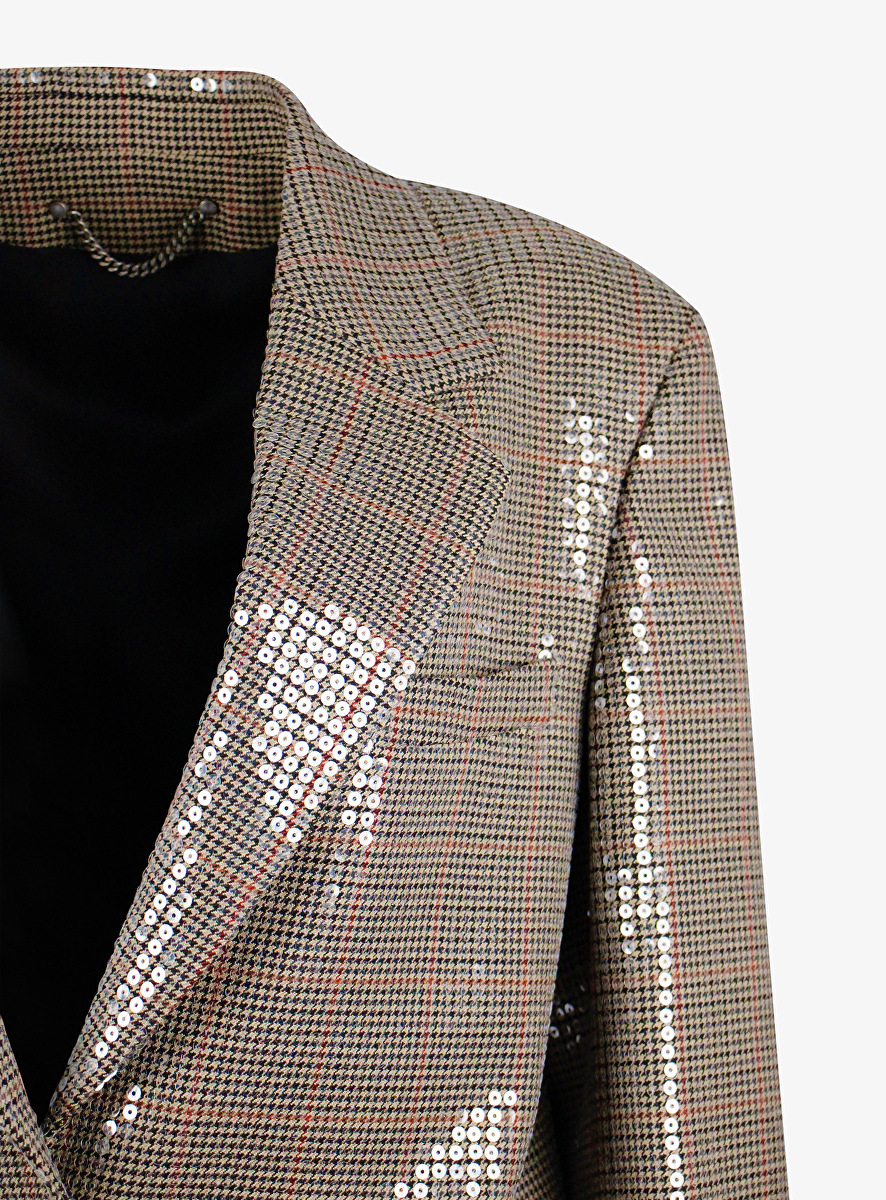 Blazer ruit shiny met pailletten