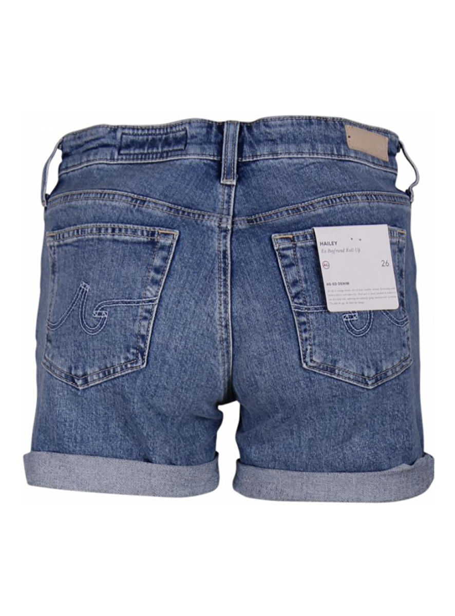 Short jeans Haley ex boyfriend roll-up. Five pocket. Zilverkleurige details. Leder nude stukje aan de achterkant taille.