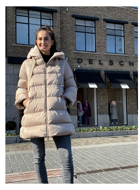 • Detail: goudkleurige rits - manchetknopen - lint.