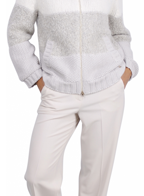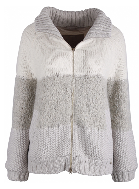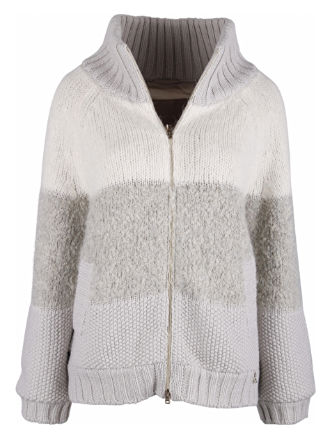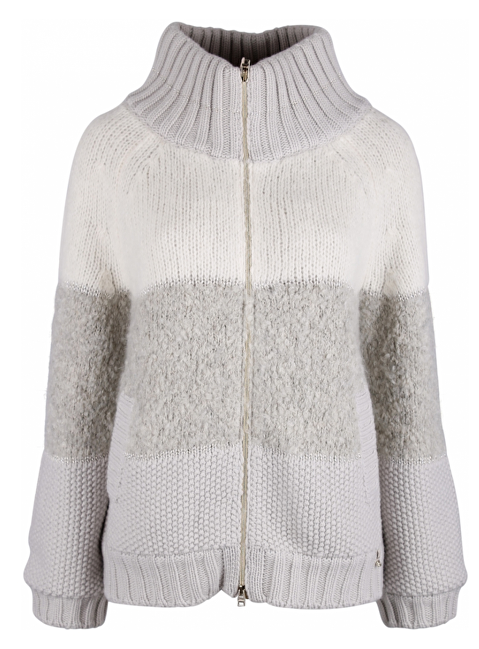 Gebreid vest met opstaande kraag. Gevoerd. Steekzakken. Goudkleurige details.