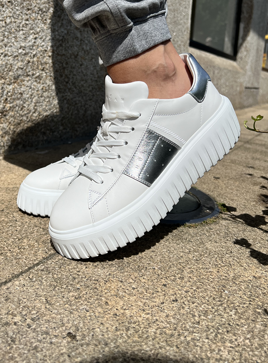 De stripes sneaker is een compact en uitgebalanceerd model met de kenmerkende H op de zijkant gestikt.