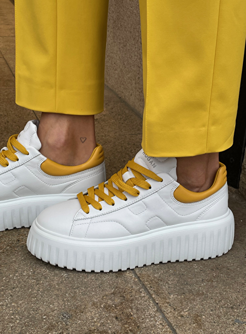 Sneakers H stripes wit geel