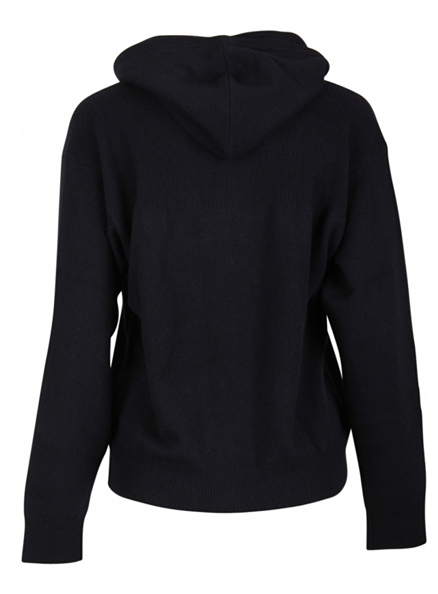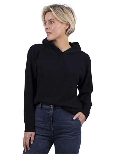 Casual chique cashmere hoodie met dubbele capuchon. Relaxed loungewear stuk met geribbelde schouderstukken.
