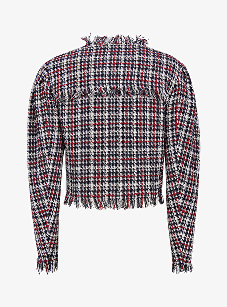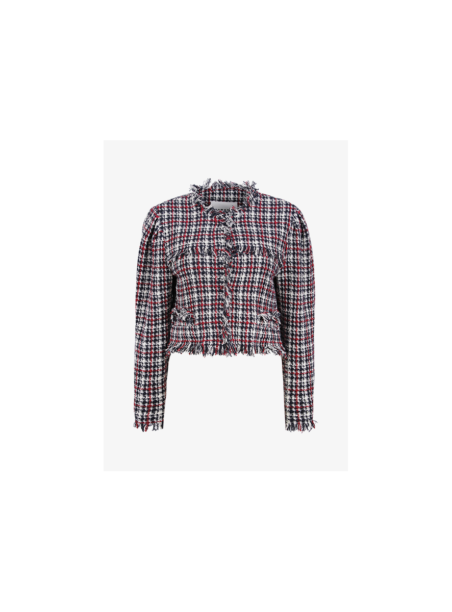 • Detail: ronde hals - franje structuur - mini zakken - pofmouwen.