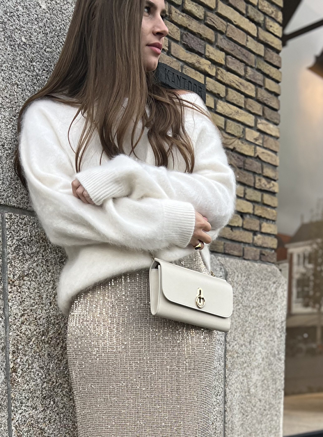Geïnspireerd door de glans van mohair, creëert de geborstelde kasjmiertechniek een zacht en donzig breisel dat licht en luchtig aanvoelt.
