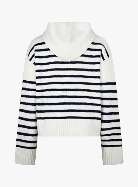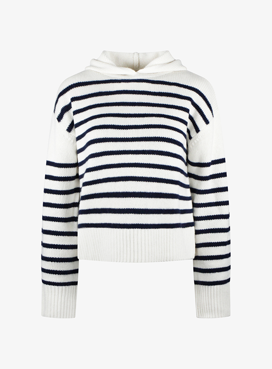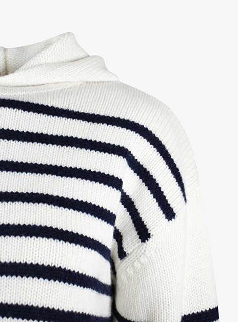 Pull streep offwhite navy met capuchon