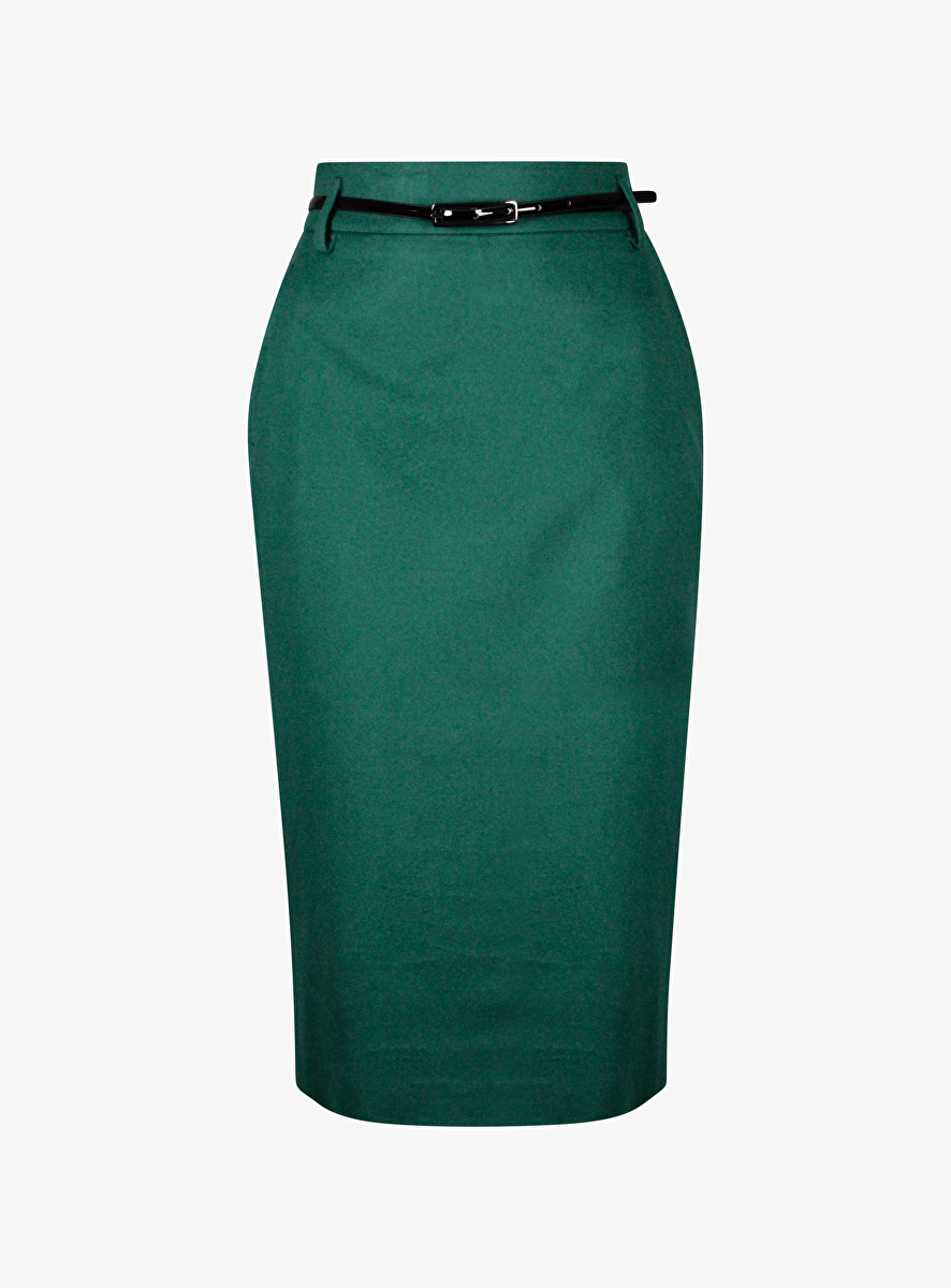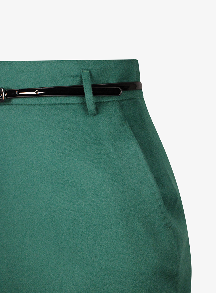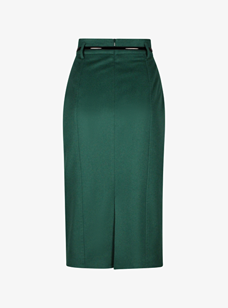Rok ginseng groen recht wol met ceintuur
