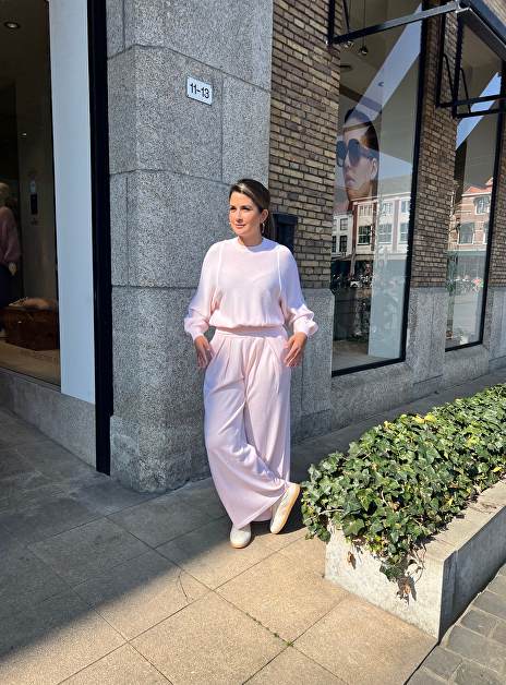 Pull licht rose lange mouw met witte bies
