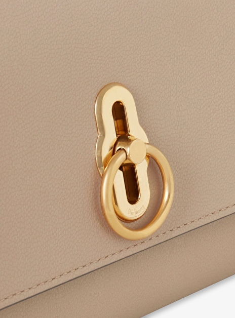 Detail: 3 vakken waarvan 1 met rits en een postman's draai lock sluiting - goud bedrukt logo buiten flap en op de sluiting - clutch / schoudertas.