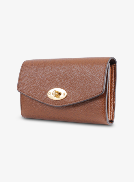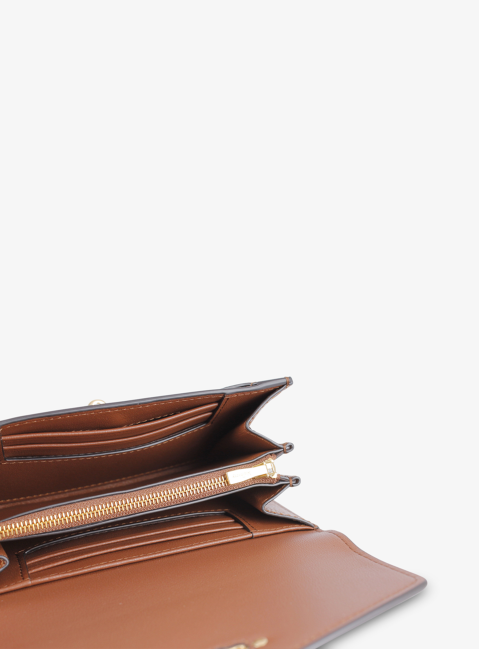 Detail: 6 card pockets en een hoofdvak met rits - 3 zijvakken - goud bedrukt logo buiten flap sluiting en aan de binnenkant - postman's draai lock sluiting.