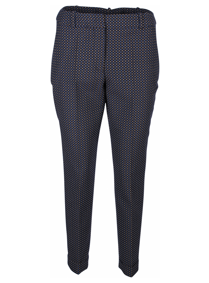Pantalon kort model met omslag in 60% polyester, 37% katoen en 3% elasthan. De basis is zwart met blauw nopje en verder een wit stipje met cognac randje. Leuke draagbare pantalon.