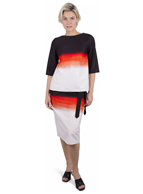 Koker rok met elastische taille zwart striklint. Rits en knoopje aan de achterkant. Split achterkant.