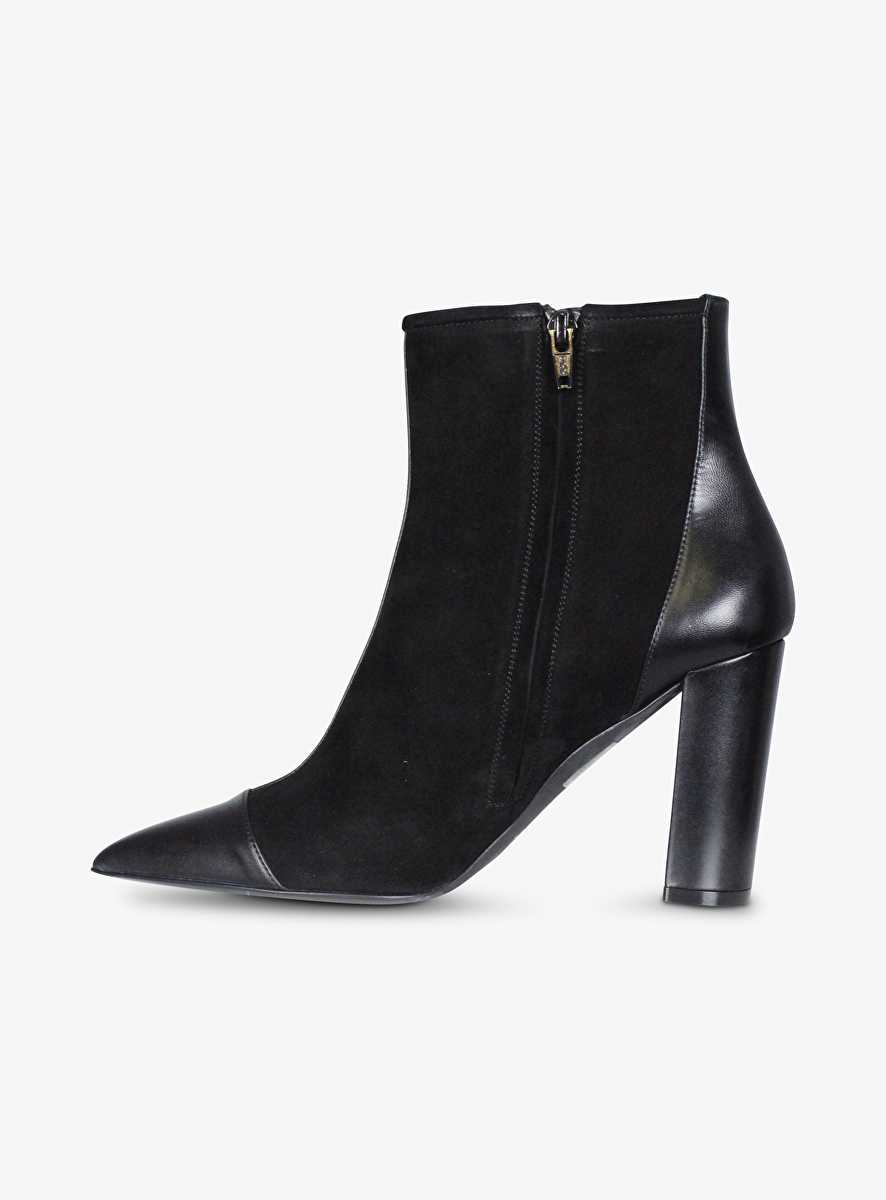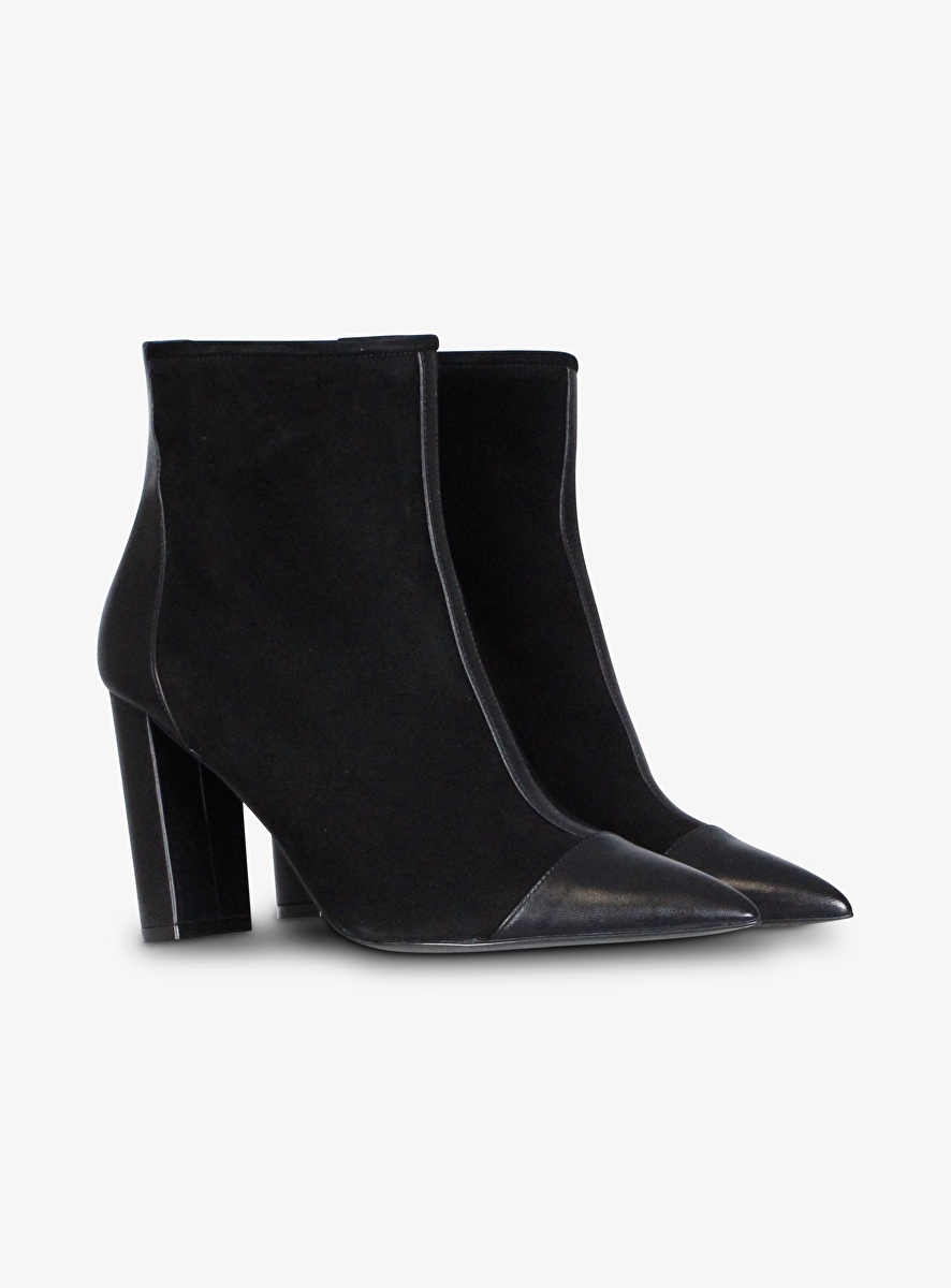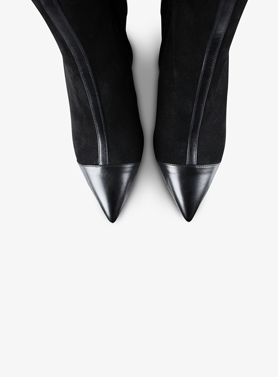 Enkellaars pointy leder en suede zwart