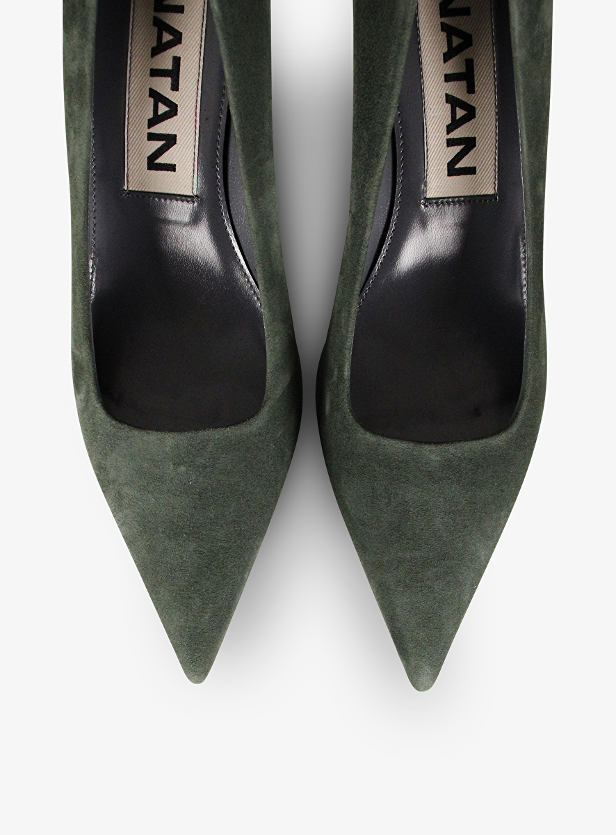 Pump pointy suede bottle groen