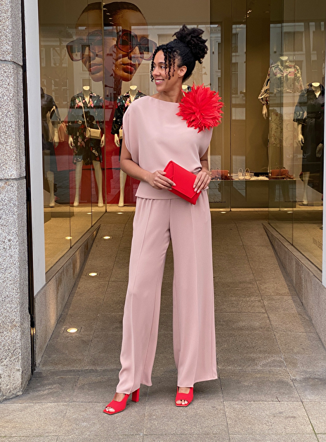 Combineer deze top met de classy pantalon Carla en er ontstaat een prachtige jumpsuit. Combineer dit met de pumps en clutch van Natan, een mooie broche en de outfit is volmaakt.