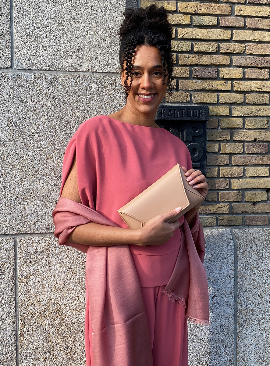 Combineer deze top met de classy pantalon Carla en er ontstaat een prachtige jumpsuit. Combineer dit met de pumps en clutch van Natan, een mooie broche en de outfit is volmaakt.