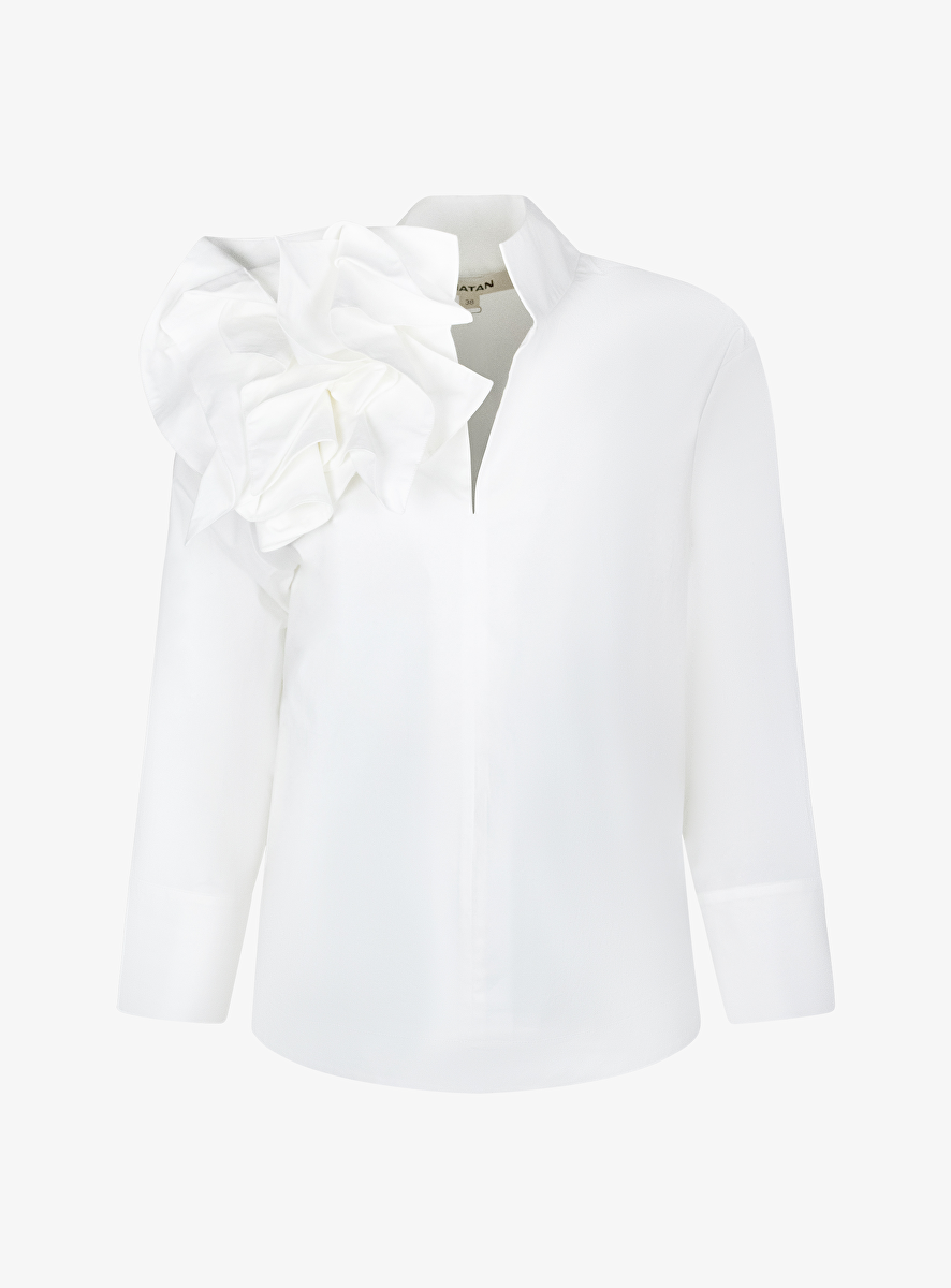 opstaande kraag uitlopend in openvallend split