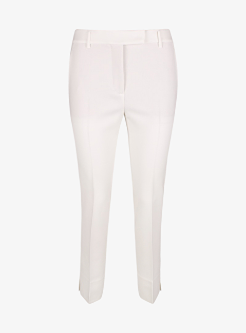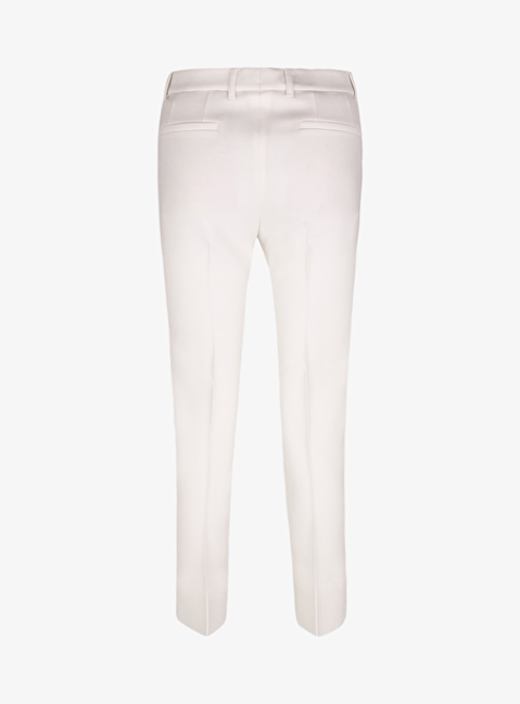 • Detail: luchtig geweven - steekzakken - blinde zakken aan de achterkant - haakje, knoop, rits - splitjes onderkant zoom - persvouw.