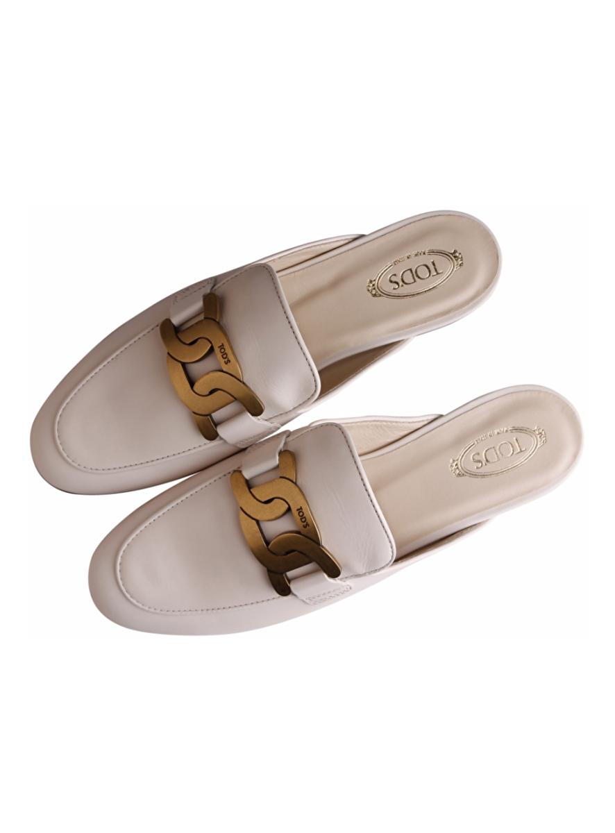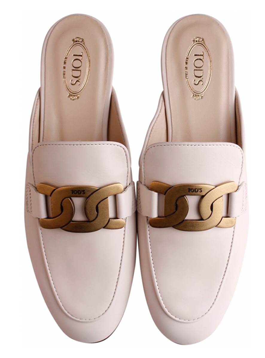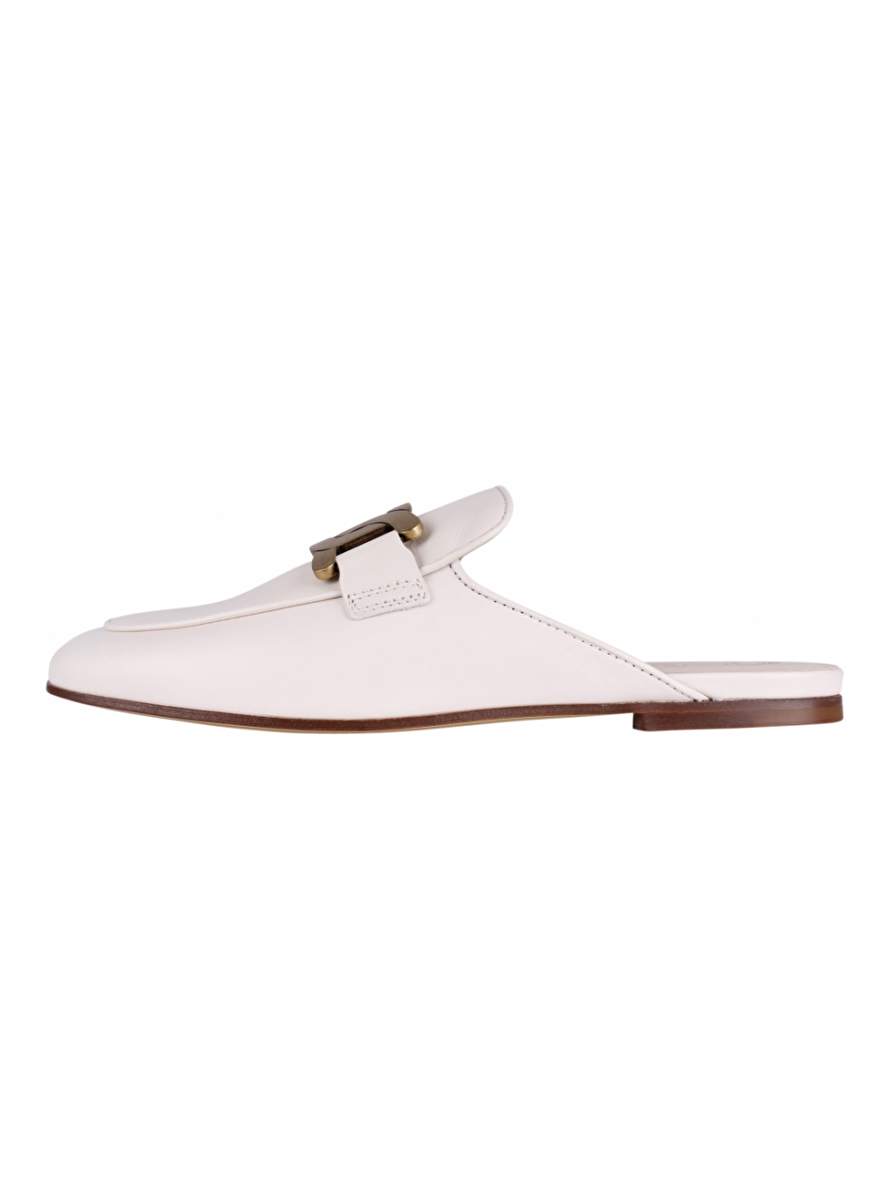 Loafer slide wit met gold vintage metalen logo op de wreef. Zool leder. Hakje.