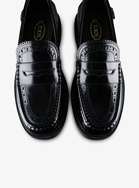 • Detail: Derby Brogues met perforaties/gaatjes - penny-bar op wreef - grove zool - Tod's label op zijkant.