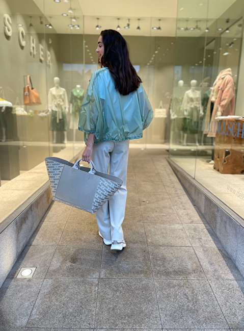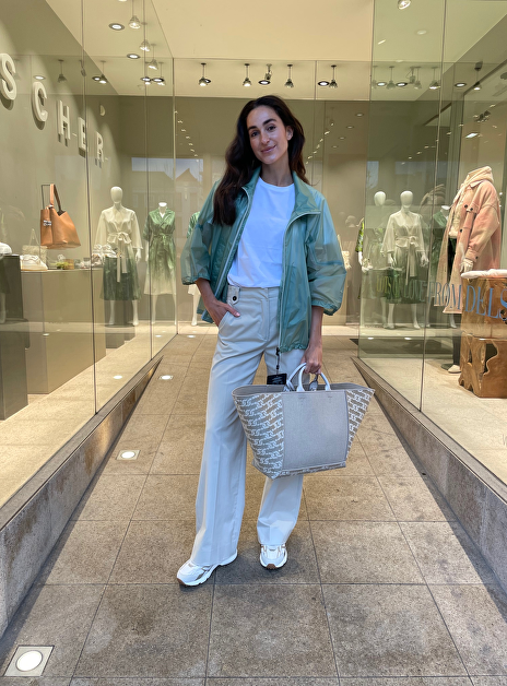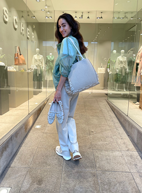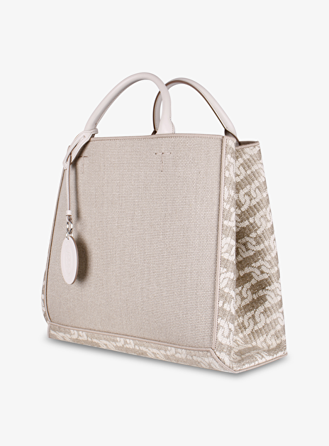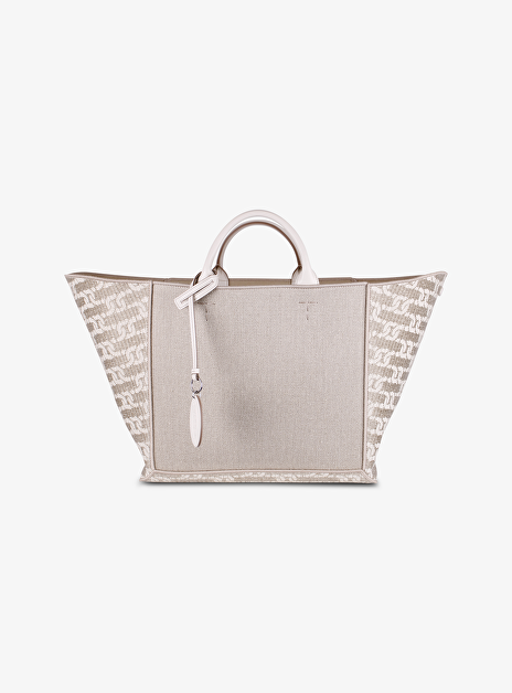 Shopper linnen leer XL logo beige
