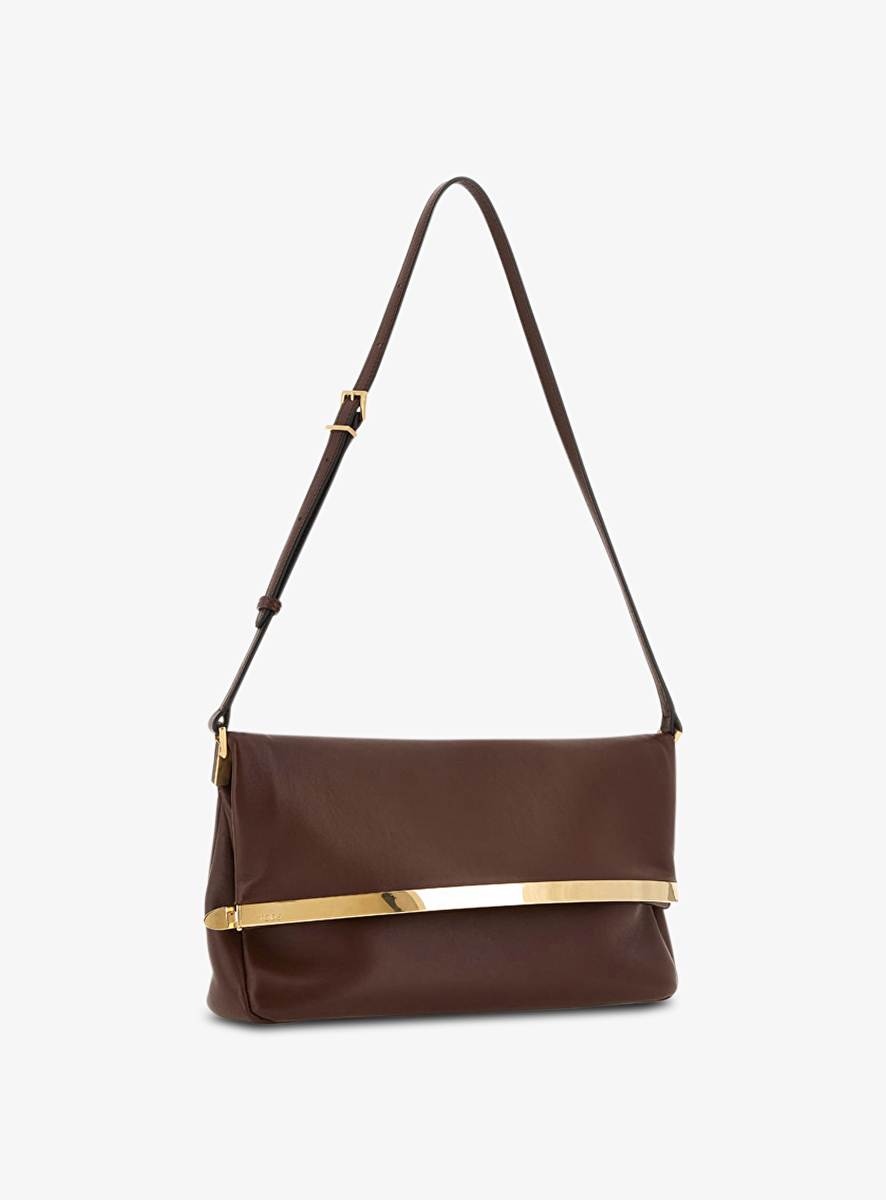 Tas clutch bruin met gouden detail en flap sluiting