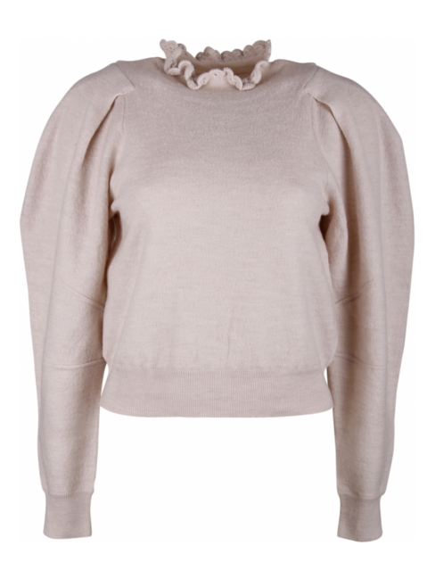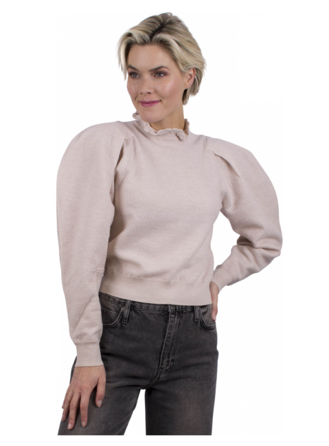 Pull merino wol beige krinkel col pofmouwen