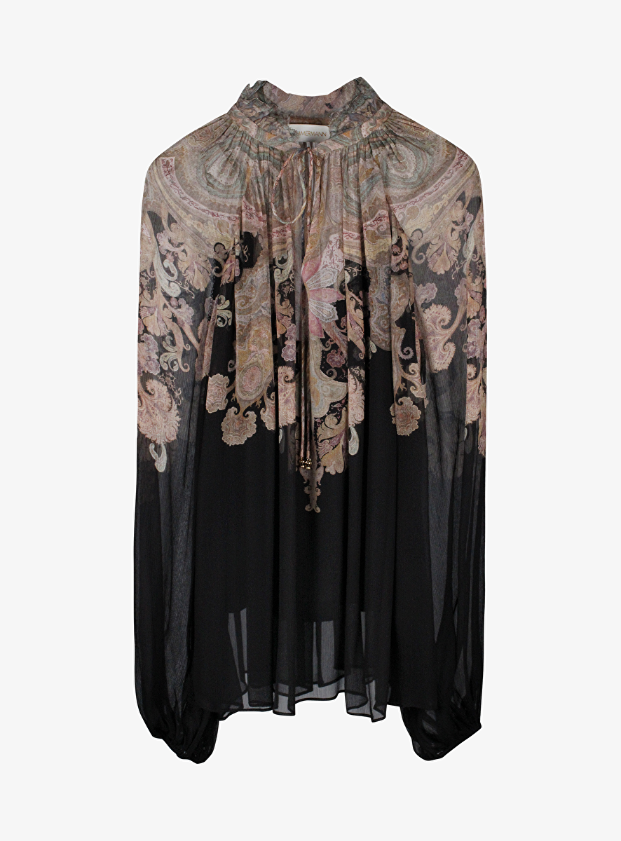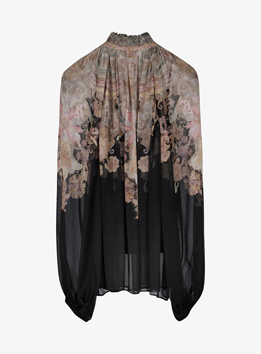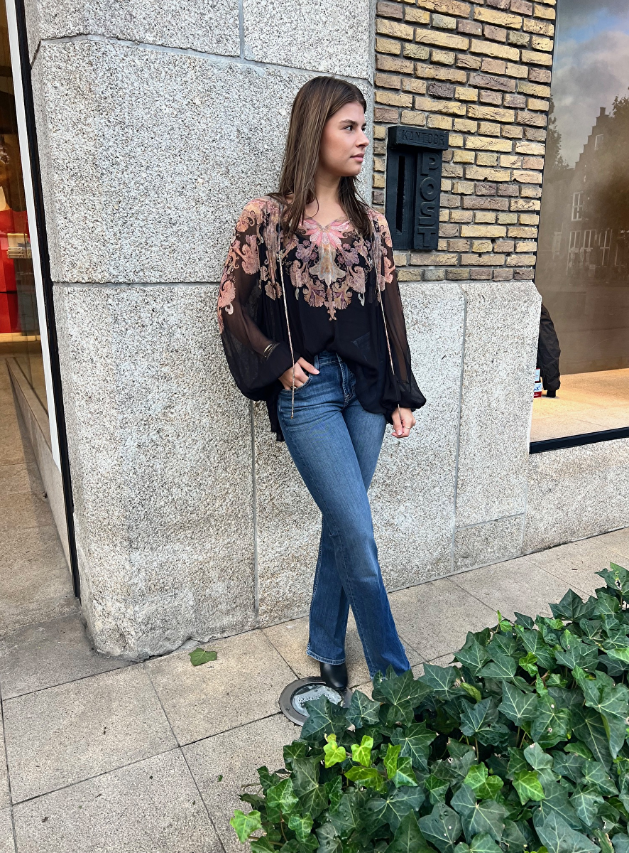 Blouse billow zwart met pink paisley print