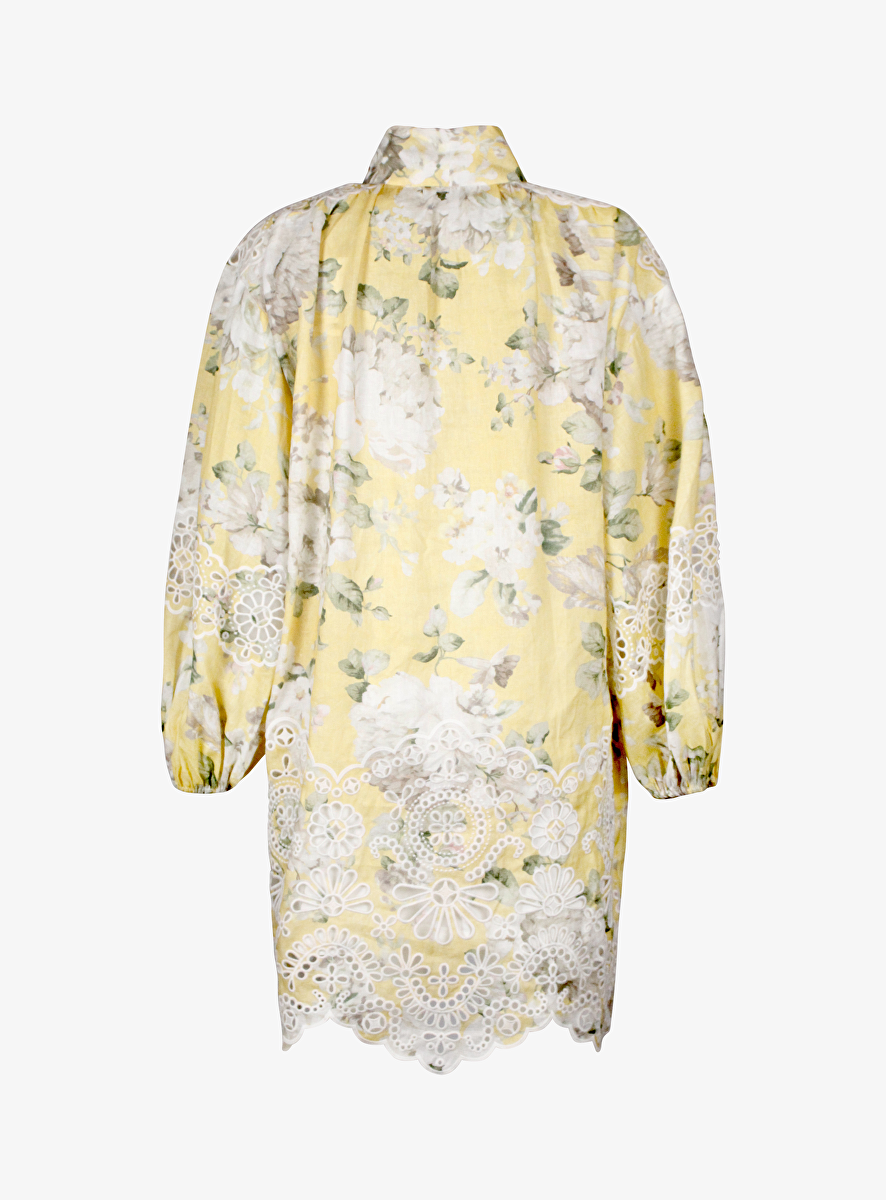 Jurk geel dessin met broderie