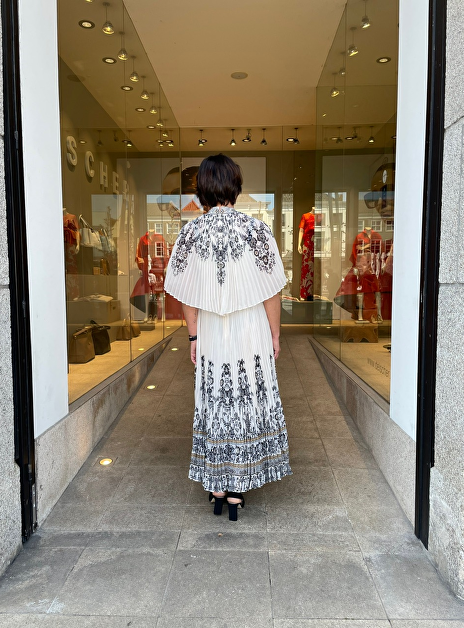 over de jurk geplisseerde mouwen in cape silhouet