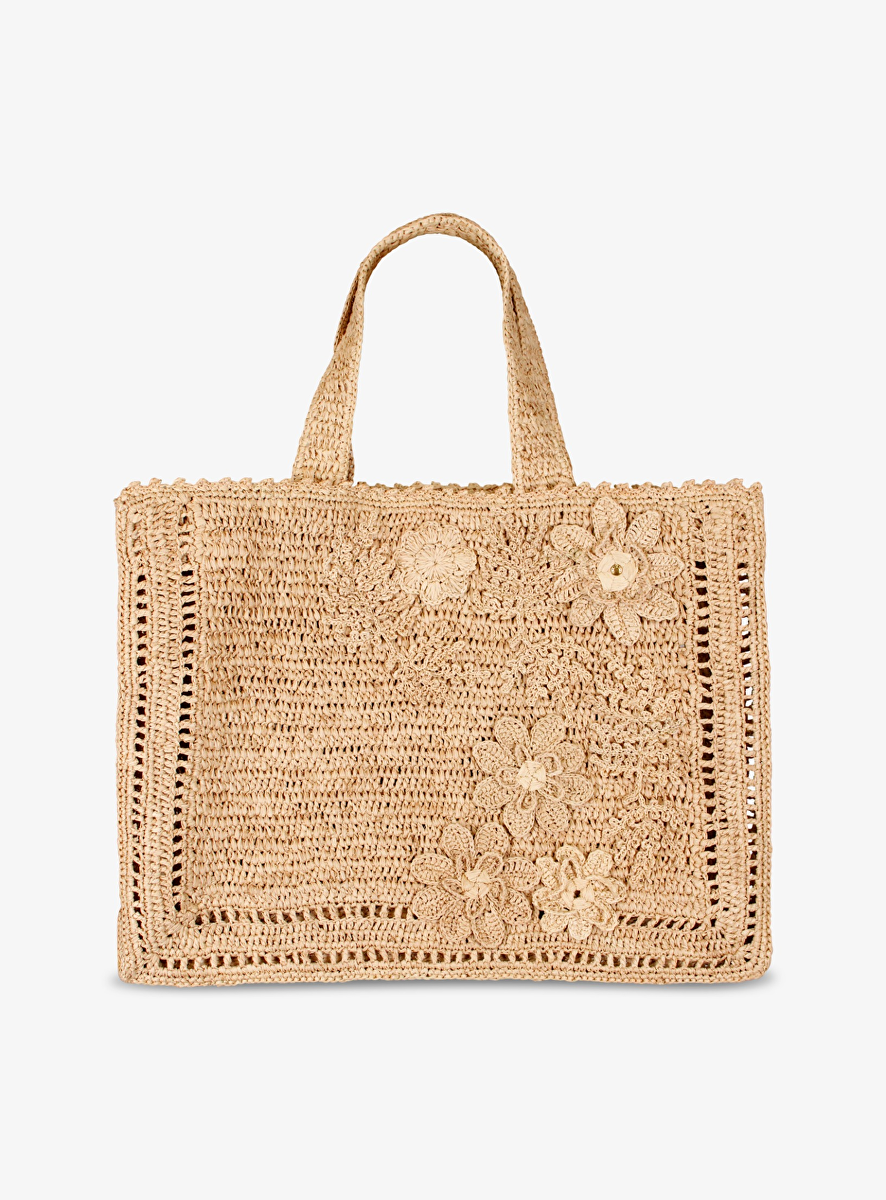Tas Floral raffia tote natural